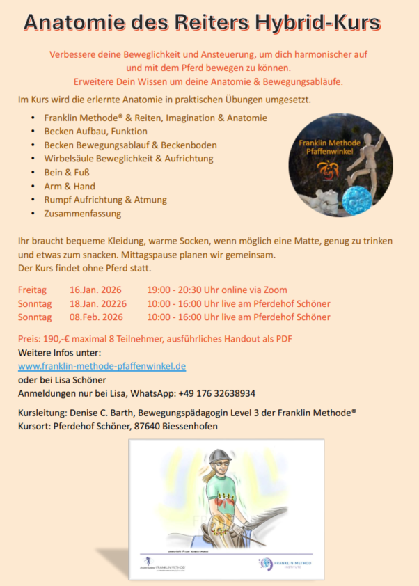 Hybrid-Kurs “Anatomie des Reiters” in Biessenhofen, siehe unten
